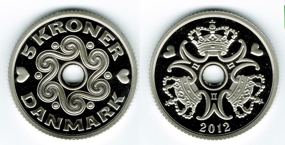 5 kr. 2012 i kv. M - fra Kgl. Proof møntsæt