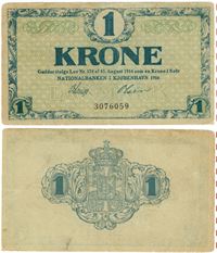 Seddel: 1 kr. 1916 uden bogstav i kv. 1+ falmet papir