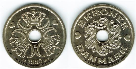 2 kr. 1993 i kv. S - fra Kgl. møntsæt