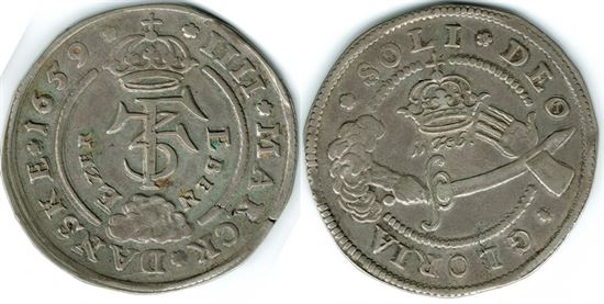 År 1659 - Fr. III - 1 krone i kv. 1+ H100A Sieg 53.1 - Ebenezer