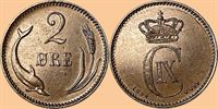 2 øre 1881 i kv. 01 - 0 - flot lysebrun farve