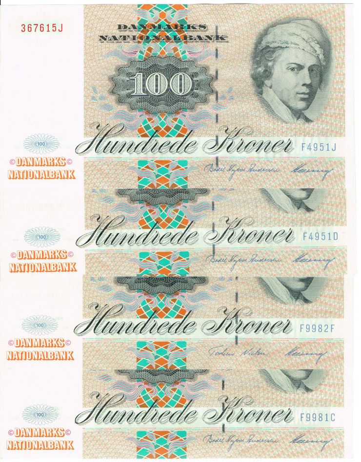 Seddel: 100 kr. 1995 - 1998 i kv. 01 - 01 - 0 4 stk.