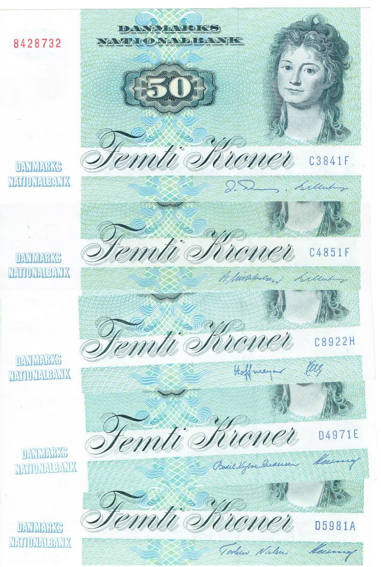 Seddel: 50 kr. 1984 - 1998 i kv. 1+ - 01 5 stk.